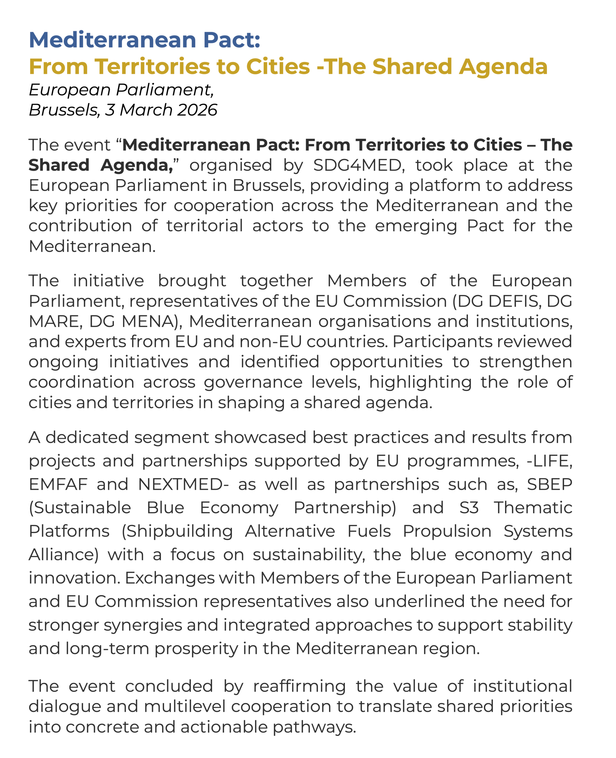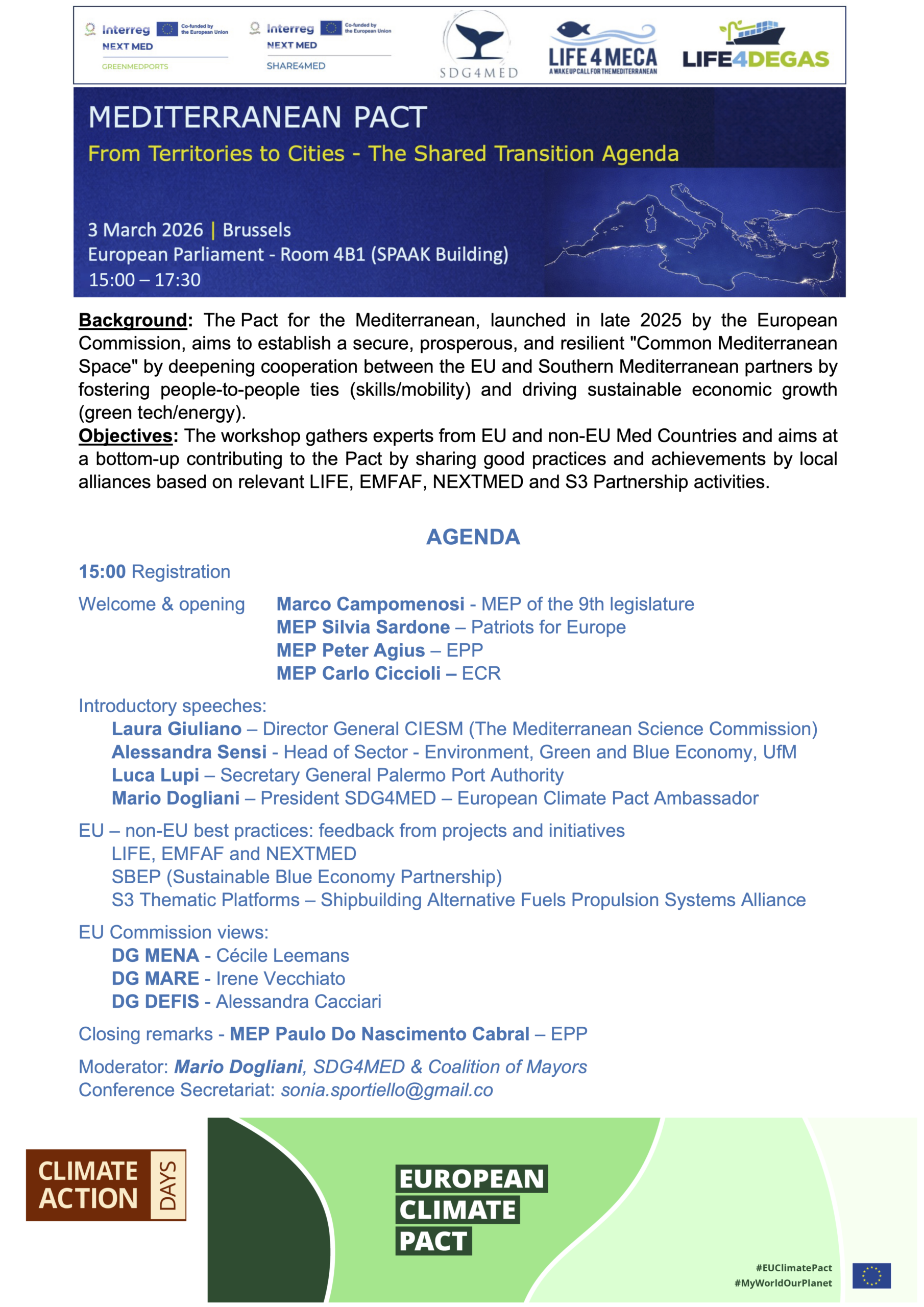 The latest news 3 March 2026, Brussels | European Parliament Some videos presentation are available at the following links: Carlo Ciccioli, Member of the European Parliament view the presentation Silvia Sardone, Member of the European Parliament view the presentation Alessandra Sensi, Head of Sector – Environment, Green and Blue Economy, UfM view the presentation click here climate pact.europa.eu
